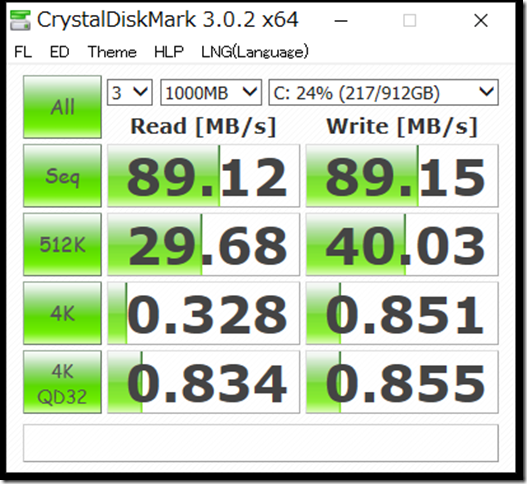上の図は交換前と交換後のディスク性能を数値化したものです。