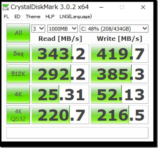 上の図は交換前と交換後のディスク性能を数値化したものです。